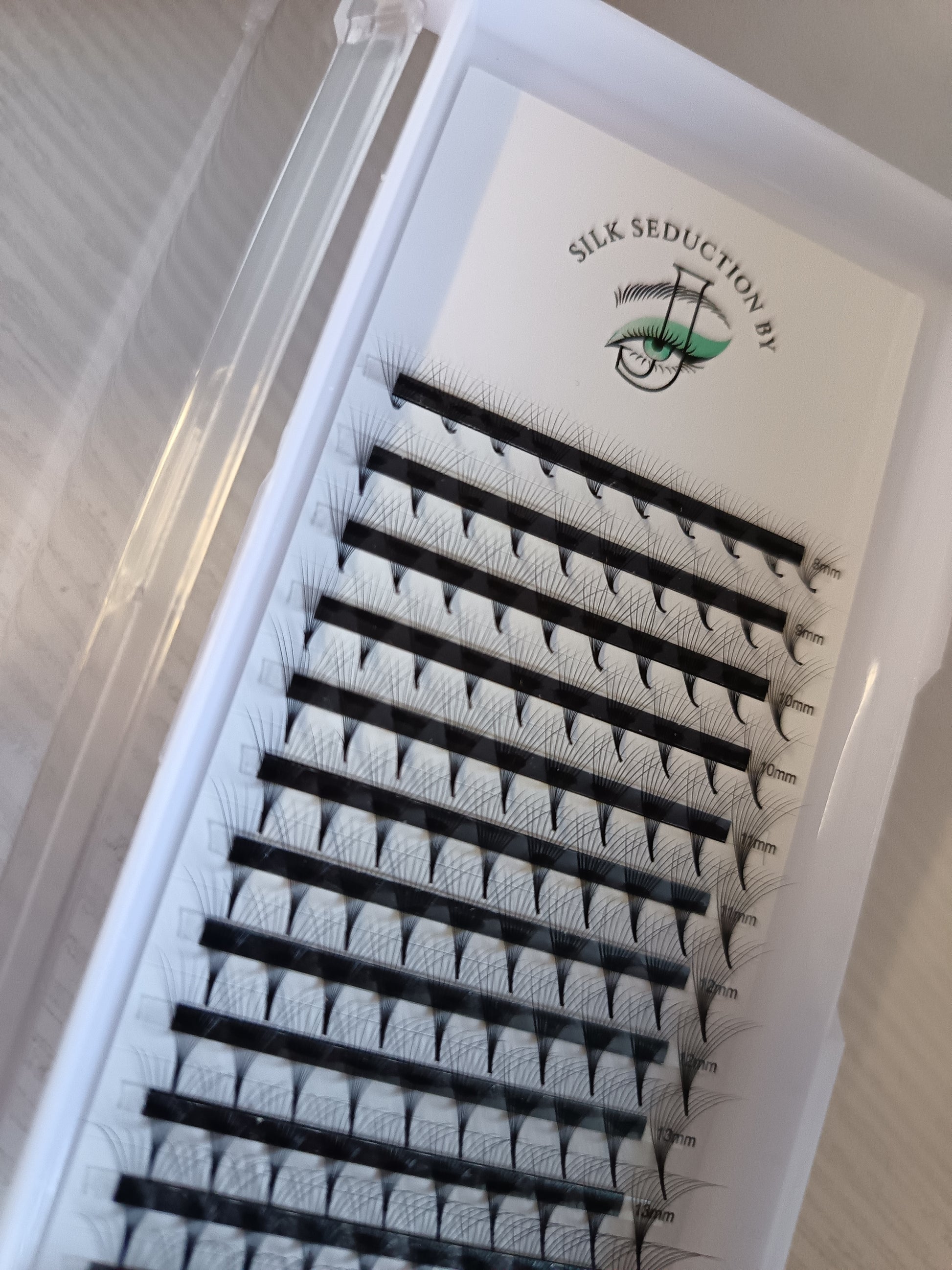 Speed meets precision with our Pre-Made Fans, crafted for lash artists who want to save time without compromising on quality. Perfect for volume sets, these ready-to-apply fans are symmetrical, lightweight, and designed to deliver consistent results every time.